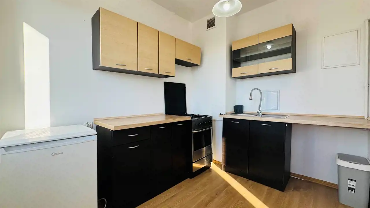 Budynek, w którym znajduje się nieruchomość, przeszedł termomodernizację (wymiana pionów oraz docieplenie). Ponadto, do lokalu doprowadzono przewód gazowy do zasilenia kuchni (gaz na licznik). W kuchni miejsce znalazły spójne meble kuchenne wraz z piekarnikiem i płytą gazową oraz mała lodówka. Łazienka lokalu została wyposażona w szafę wiszącą, kabinę prysznicową, a jej podłogi i ściany zostały pokryte płytkami. Dzięki swojemu środkowemu usytuowaniu, mieszkanie jest ciepłe, natomiast dzięki położeniu względem stron świata - pomieszczenia są świetnie nasłonecznione.
