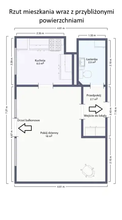 - Charakterystyka mieszkania 30.75 m2, 1 pokój
