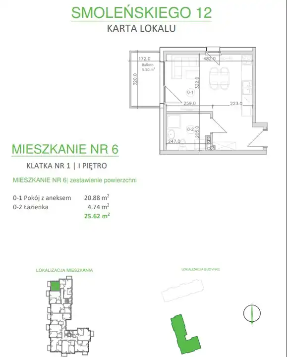 - Charakterystyka mieszkania 25.62 m2, 1 pokój