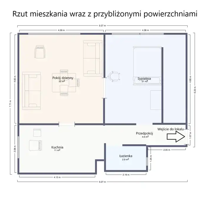 - Charakterystyka mieszkania 65.95 m2, 2 pokoje
