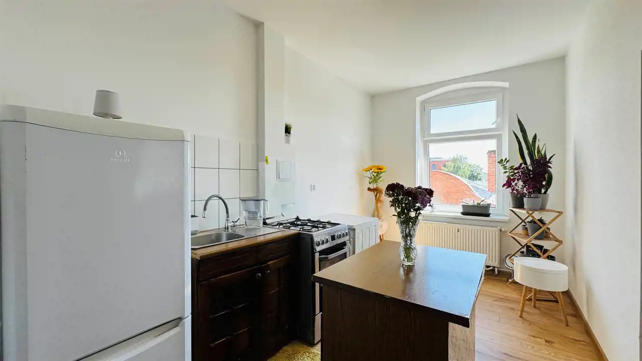 Dzięki swojemu rozkładowi oraz narożnemu usytuowaniu, kuchnia oraz pokój dzienny są świetnie nasłonecznione. Celem zapewnienia lepszego ogrzewania i zniwelowania ucieczek ciepła, sufity w lokalu zostały obniżone i dodatkowo ocieplone, okna wymienione na nowe PCV, a w 2014 roku - lokal został wyposażony w dwufunkcyjny kocioł gazowy zasilany gazem z sieci miejskiej. Wybudowana w 1904 roku kamienica została odnowiona, jej elewacje docieplone, a dojazd oraz pobliski parking przy budynku - pokryte kostką.