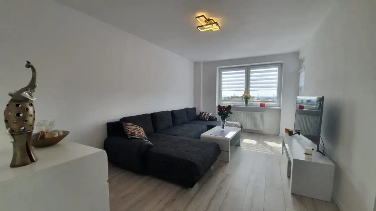Opłata do spółdzielni wynosi ok. 600 zł miesięcznie (na 1 osobę), w co wliczone jest:Mieszkanie zostało urządzone w nowoczesnym stylu z dbałością o każdy detal. Zastosowanie modnych barw spełni oczekiwania najbardziej wymagających klientów. Efektowna, biała kuchnia w zabudowie została zaopatrzona w sprzęt taki jak: lodówko-zamrażarka Indesit (czarna na wysoki połysk), piekarnik z płytą gazową Amica, zmywarka Electrolux i nowoczesny pochłaniacz. W przytulnej i bardzo estetycznej łazience, ściany i podłogę pokryto kaflami. Pomieszczenie to wyposażono w nowoczesną kabinę prysznicową wraz z efektownym, podświetlanym zestawem natryskowym. W sypialni zamontowano funkcjonalną szafę, oraz duże łóżko typu king-size, za którym znajduje się imponująca ściana w odcieniu głębokiej czerni. Sercem nieruchomości jest jasny salon, stanowiący strefę relaksu. Dzięki dużej rogowej kanapie, wypoczynek będzie prawdziwą przyjemnością. Wyposażenie tego pokoju obejmuje także komodę, szafkę RTV i stolik kawowy, wykonane na wysoki połysk w kolorze białym.