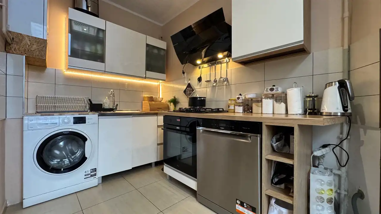 W maju 2024 roku mieszkanie przeszło remont generalny, podczas którego wstawiono nowe okno balkonowe, wyremontowano łazienkę (wstawiono m.in. kabinę prysznicową z odpływem liniowym), podwieszono sufity w pokojach, położono panele podłogowe, odmalowano ściany, wymieniono grzejniki, zamontowano oświetlenie oparte o technologię LED, wymieniono drzwi wejściowe (antywłamaniowe w kolorze antracytu) oraz zamontowano w oknach rolety materiałowe typu dzień-noc. Dodatkowo, kilka lat temu wymieniono instalację elektryczną wraz z instalacją grzewczą (zasilaną dwufunkcyjnym kotłem gazowym De Dietrich). Kuchnia została wyposażona w sprzęt: okap, zmywarkę Whirlpool, piekarnik wraz z płytą gazową Amica, pralkę oraz lodówko-zamrażarkę Beko w jadalni. Jedna z sypialni została przedzielona ścianą działową, tworząc w ten sposób dodatkowe pomieszczenie (obecnie zagospodarowane jako garderoba). Istnieje możliwość zburzenia ściany celem stworzenia większej sypialni.
