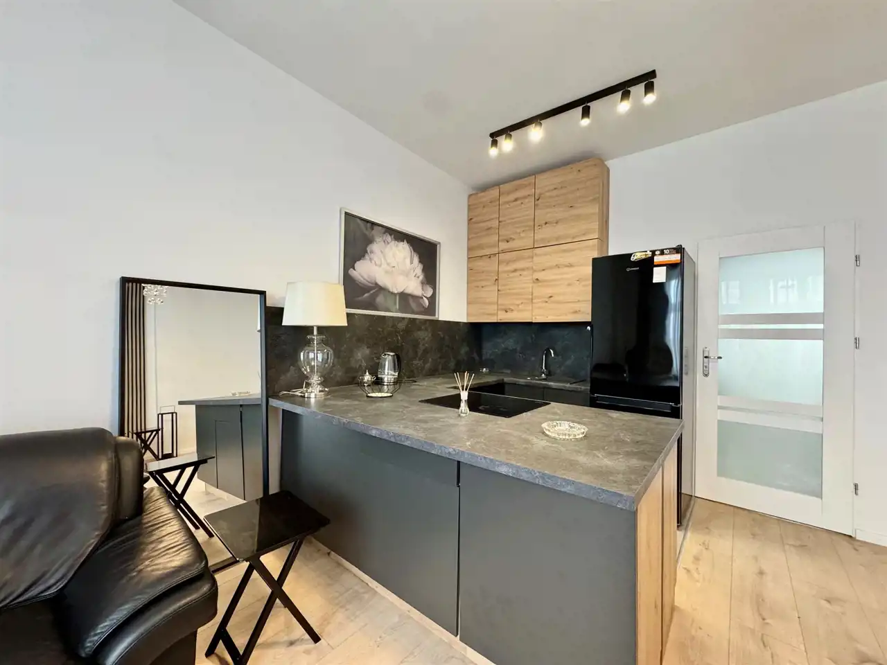 nowoczesną kuchnię z płytą indukcyjną i zmywarką,