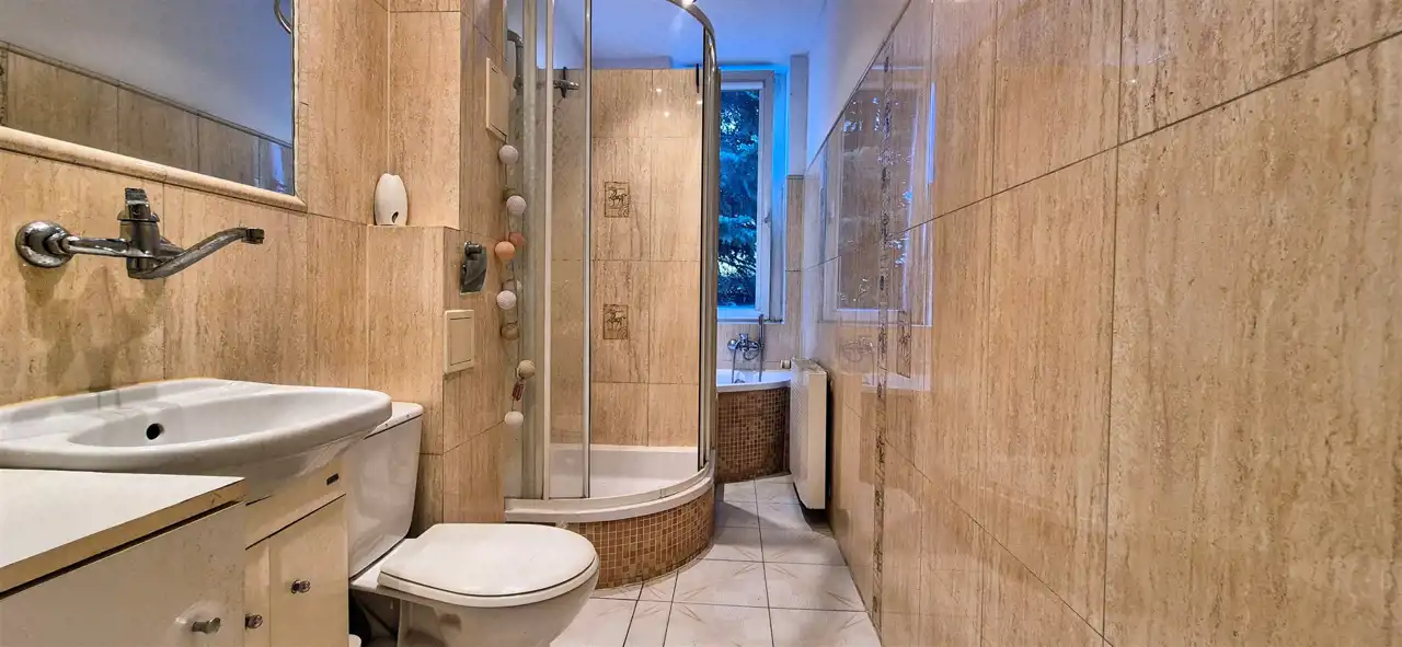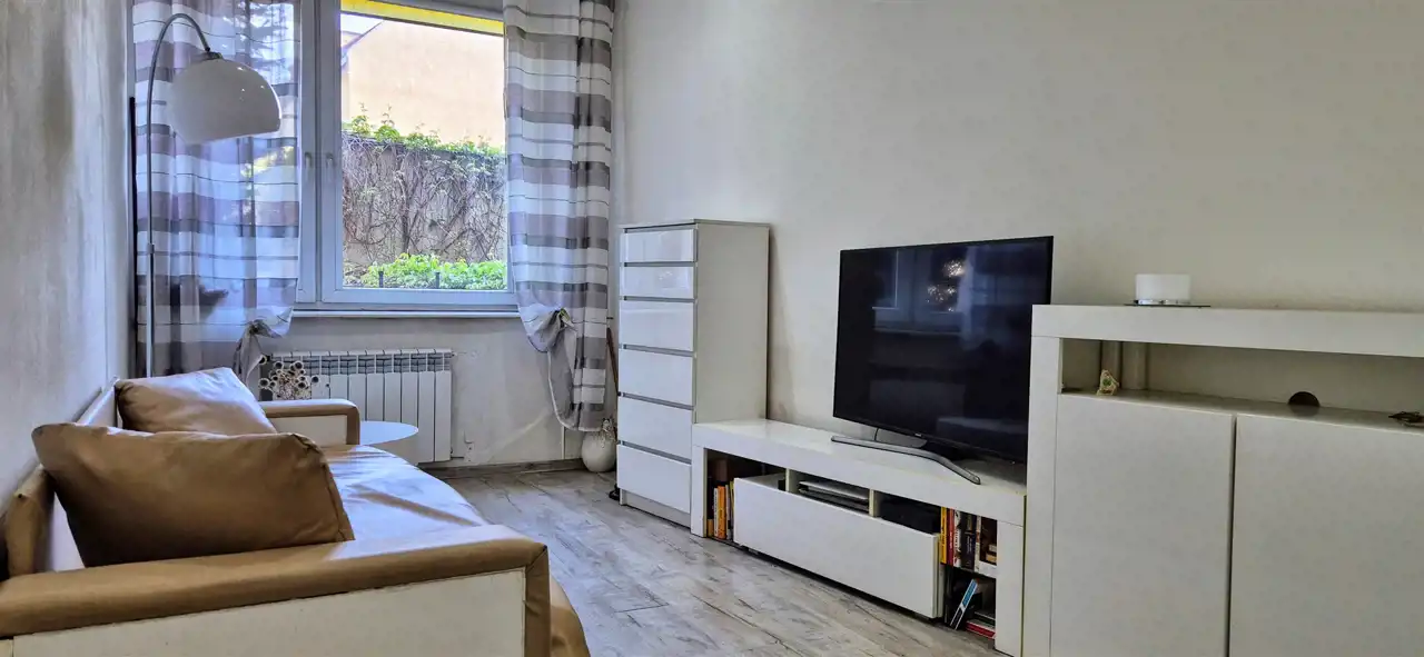 Standard lokalu: Na podłogach w pokojach ułożono panele podłogowe w kolorze drewna, natomiast na ścianach położono gładź i pomalowano farbą w jasnych kolorach. W kuchni i przedpokoju na podłodze położony jest gres w szarym kolorze. Kuchnia została wyposażona w meble kuchenne wraz ze sprzętem AGD: zmywarkę, lodówkę Bosch, piekarnik elektryczny oraz płytę indukcyjną Amica. Łazienka została wyposażona w kabinę prysznicową, wannę, zlew, pralkę AEG, lustro oraz wc. Na ścianach i podłodze zostały położone płytki. W całej nieruchomości sufity są podwieszone, na których zamontowane są halogeny. Ogrzewanie centralne zasilane jest piecem gazowym Beretta, znajdującym się w łazience. Mieszkanie jest dwustronne, ciche i słoneczne. Nieruchomość jest idealnie zlokalizowana w nieopodal terenów spacerowych, lasu, ścieżek rowerowych oraz bardzo dobrze skomunikowane z miastem. Opłaty związane z nieruchomością to: czynsz do wspólnoty mieszkaniowej (obecnie to kwota 400 zł /przy 1 osobie), na który składają się: zaliczki na poczet funduszu remontowego, opłaty za zużyte media wg liczników: zimna woda, koszty administracyjne, opłaty za wywóz nieczystości wg ilości osób, sprzątanie klatek schodowych, odrębny rachunek stanowi opłata za zużytą energię elektryczną oraz gaz wg odczytów licznika. Wybrane atuty oferowanej nieruchomości: