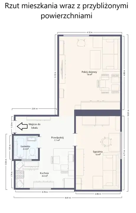 - mieszkanie oferowane razem z wyposażeniem kuchni, łazienki, przedpokoju i pokoju dziennego;