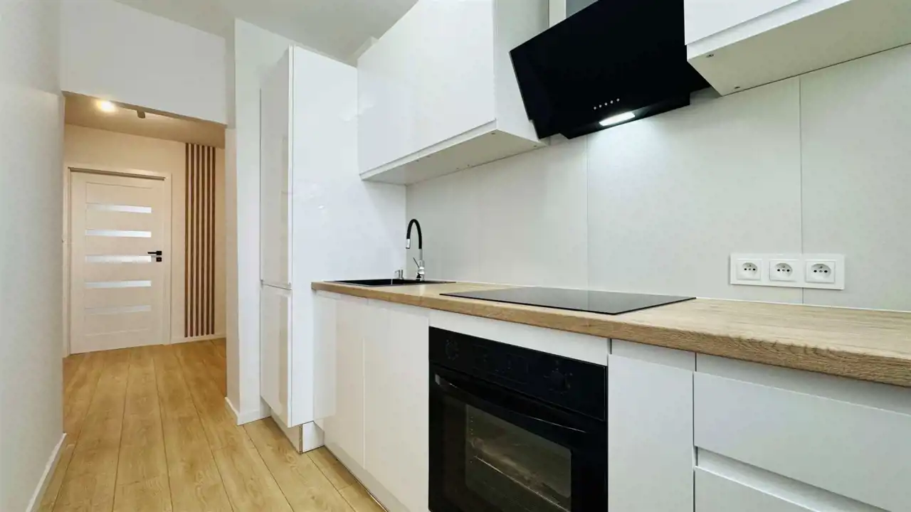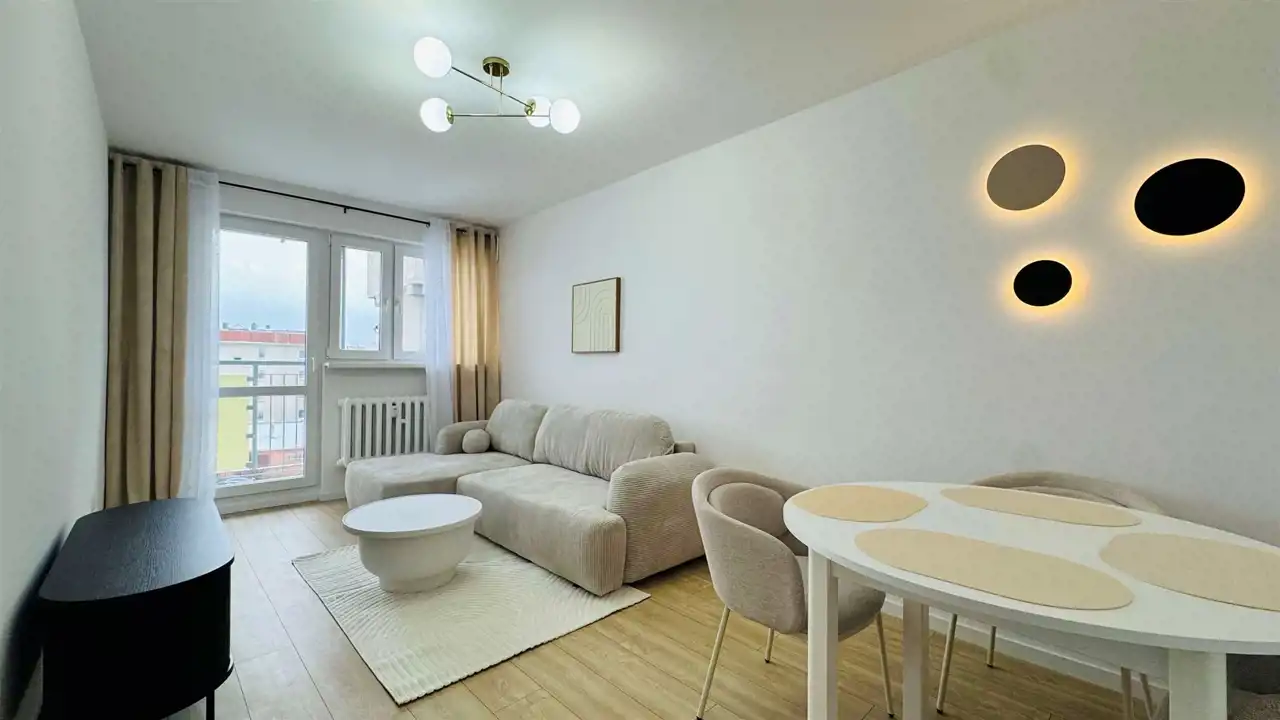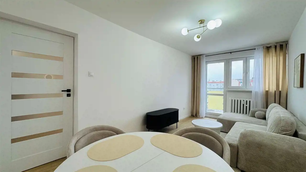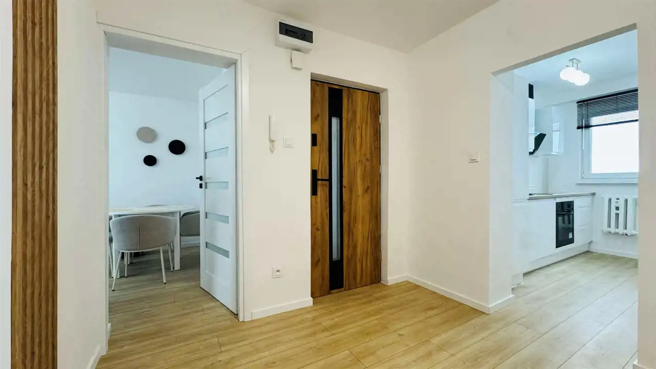 Mieszkanie przeszło gruntowny remont, podczas którego m.in. wymieniono instalację elektryczną i hydrauliczną, wstawiono nową podłogę, ściany pokryto nowym tynkiem i farbą, urządzono pokój dzienny (w kanapę, stolik kawowy, szafkę RTV oraz stół z krzesłami) wraz z dodatkowym oświetleniem. Kuchnia została wyposażona w stylowe meble wraz ze sprzętem: płytą i piekarnikiem oraz zmywarką Amica i okapem. Dla podkreślenia walorów estetycznych mieszkania, całość mebli i wyposażenia została utrzymana w modnych barwach - bieli, czerni i odcieniach drewna, w części okien zamontowano żaluzje oraz karnisze, wstawiono wysokiej jakości drzwi wewnętrzne wraz z ładnymi ościeżnicami i wysokiej jakości, antywłamaniowe drzwi zewnętrzne oraz stylowe lamele.