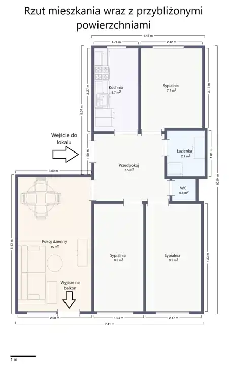 - Charakterystyka mieszkania 62.22 m2, 4 pokoje
