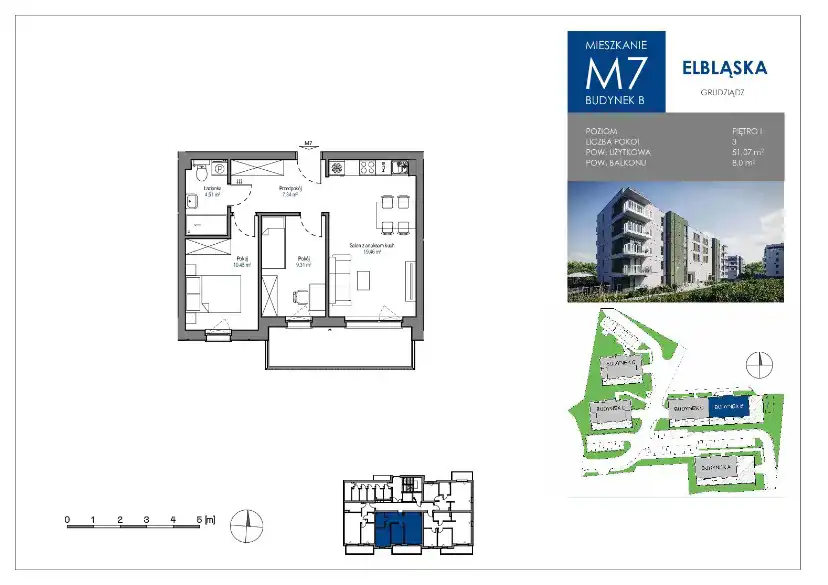 Biuro nieruchomości BAJ HOME oferuje Państwu w sprzedaży nowoczesne mieszkanie o powierzchni 51,07 m2, które umiejscowione będzie na efektownie usytuowanym osiedlu pod nazwą Wzgórza Tarpno, zlokalizowane przy ul. Elbląskiej w Grudziądzu. Nieruchomość znajdować się będzie na piętrze I w budynku B.
