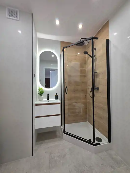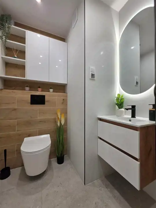** Łazienka z WC – zaprojektowana i wykończona w nowoczesnym stylu