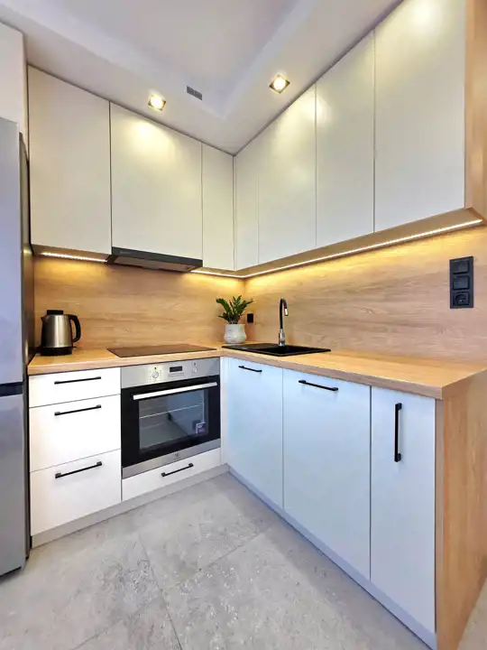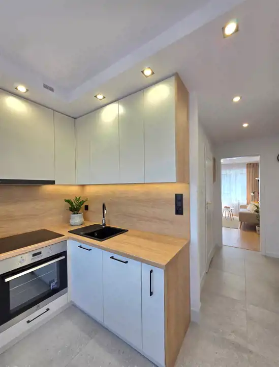 ** Kuchnia – oddzielna i funkcjonalna, wyposażona w sprzęt AGD: lodówka, płyta indukcyjna, okap.