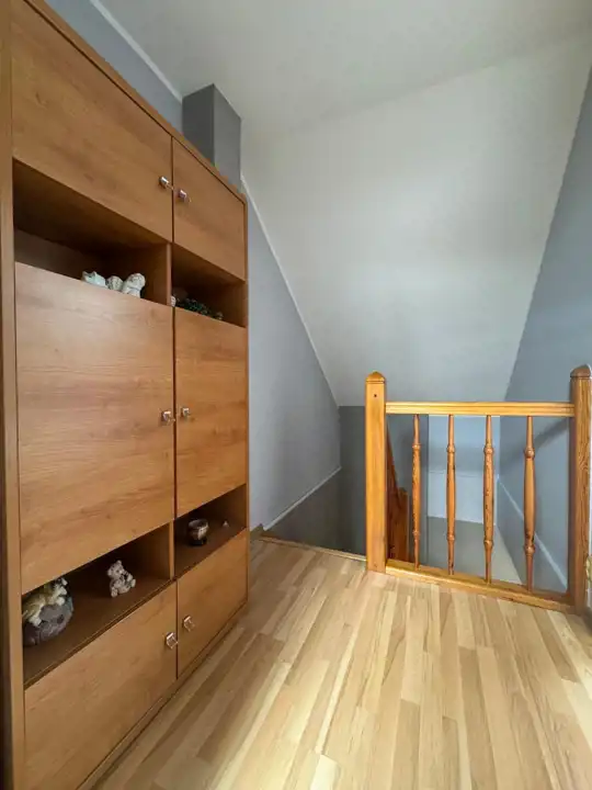 Wyjątkowy atut mieszkania stanowi duży pokój dzienny, z którego rozpościera się ładny widok nad innymi budynkami. Mieszkańcy bloku mają możliwość korzystania zarówno z ogólnodostępnych, darmowych miejsc parkingowych, jak i z płatnego, strzeżonego parkingu (w odległości około 200 metrów od bloku). Dla wygody lokatorów, w przedpokoju wstawiono pojemną szafę w zabudowie, zamontowano dwa unifony (po jednym na poziom), a dla poprawienia bezpieczeństwa - zamontowano antywłamaniowe drzwi wejściowe.