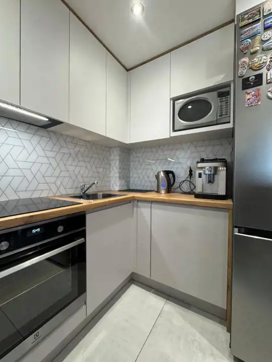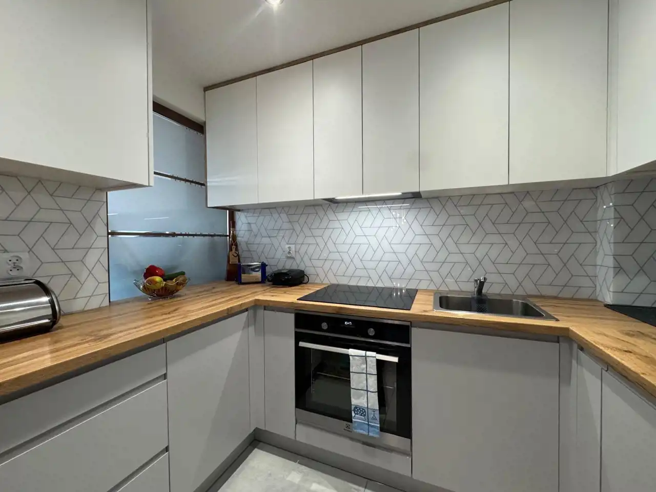 - nowa kuchnia wyposażona w: zmywarkę Electrolux (60 cm), lodówko-zamrażarkę Samsung, piekarnik i płytę indukcyjną Electrolux i pochłaniaczem;