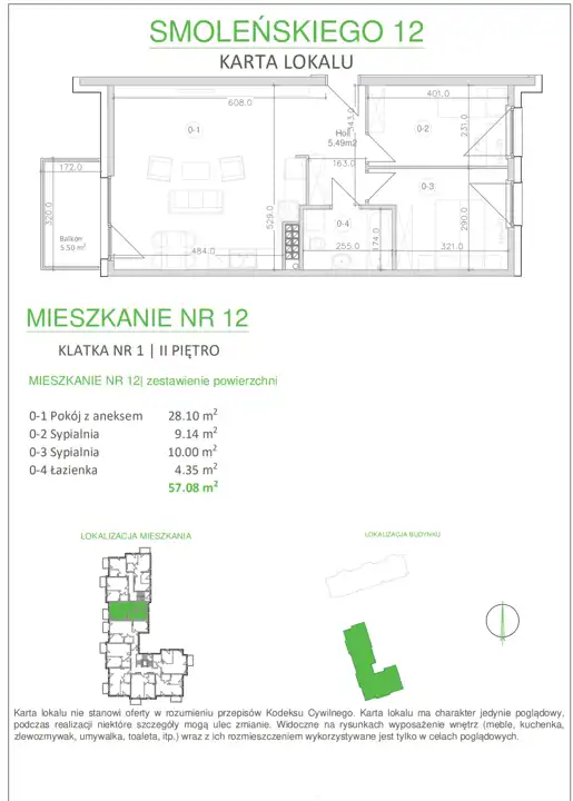 - Charakterystyka mieszkania 57.08 m2, 3 pokoje