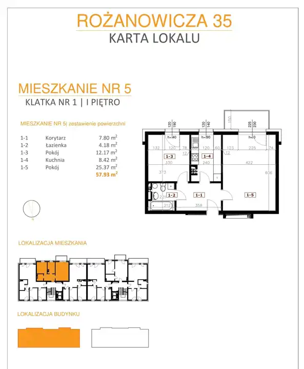 - Charakterystyka mieszkania 57.93 m2, 2 pokoje
