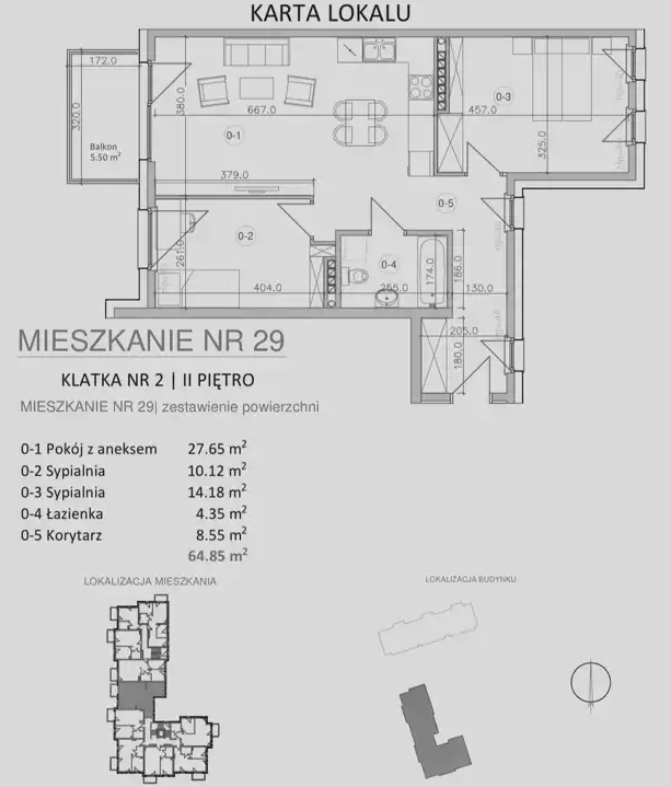 - Charakterystyka mieszkania 64.85 m2, 3 pokoje