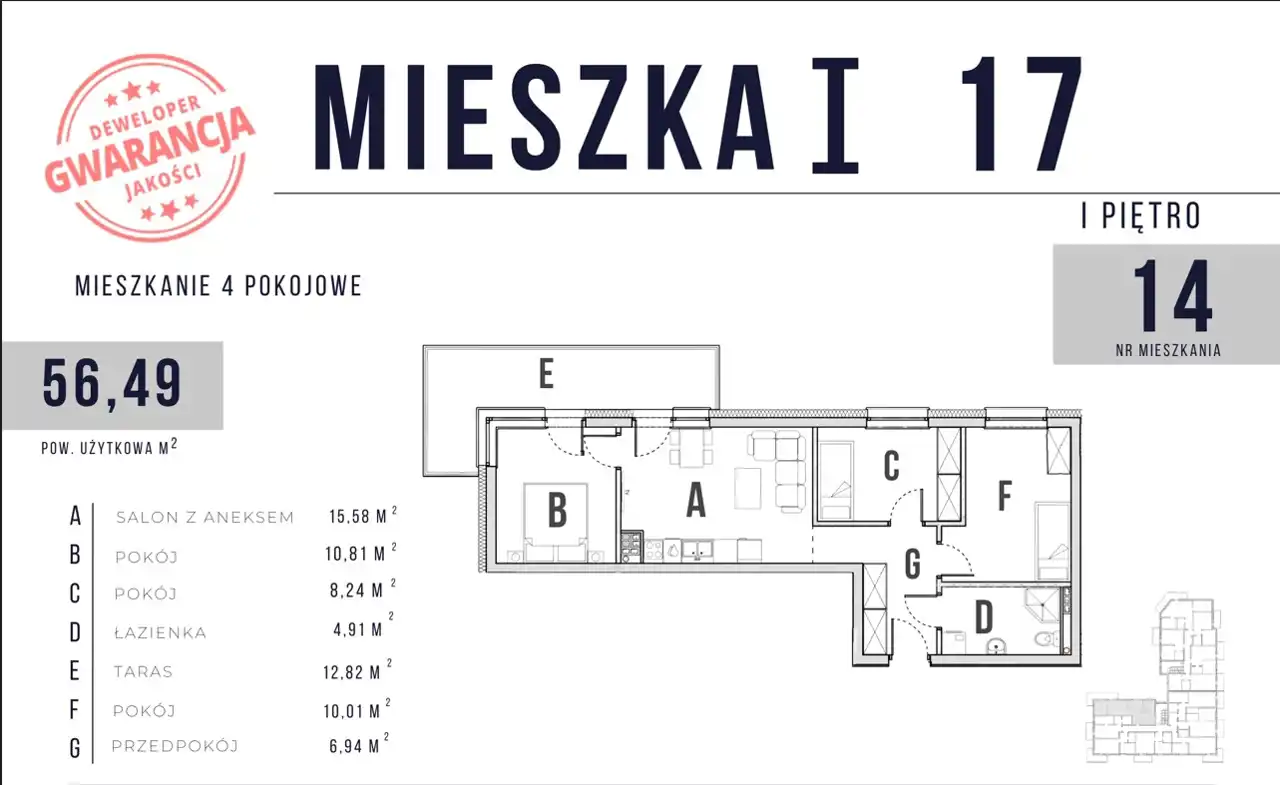 - Charakterystyka mieszkania 56.49 m2, 4 pokoje