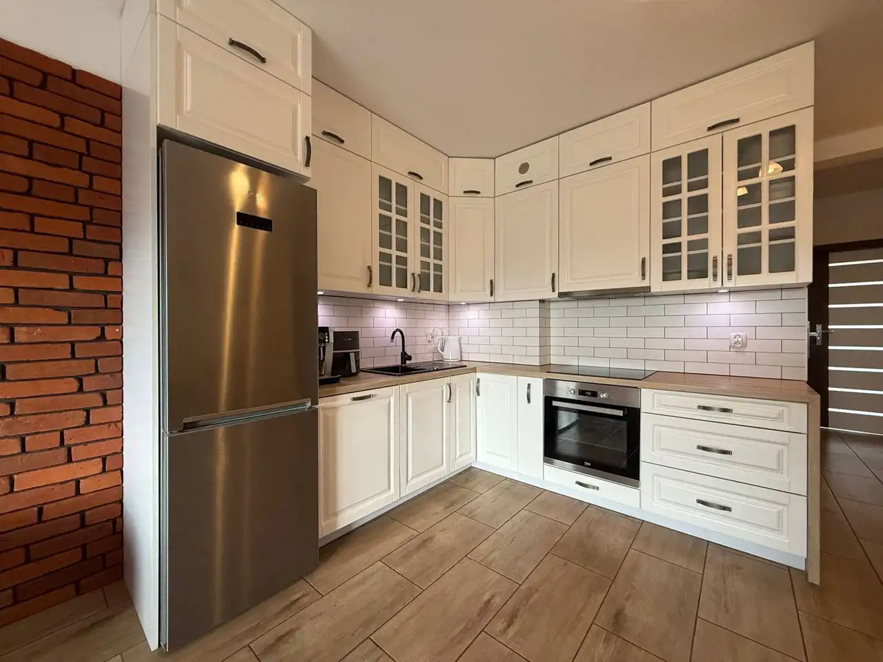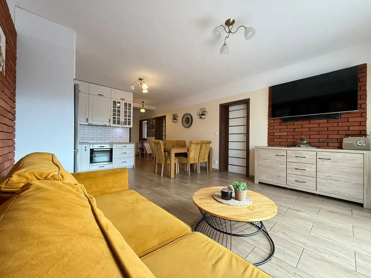 Wnętrza zachwycają nowoczesnym designem i dbałością o detale. Gładzie, ozdobna cegiełka na ścianach oraz harmonijna kolorystyka nadają przestrzeni elegancji i przytulności. Mieszkanie jest gotowe do wprowadzenia – bez dodatkowych nakładów finansowych.