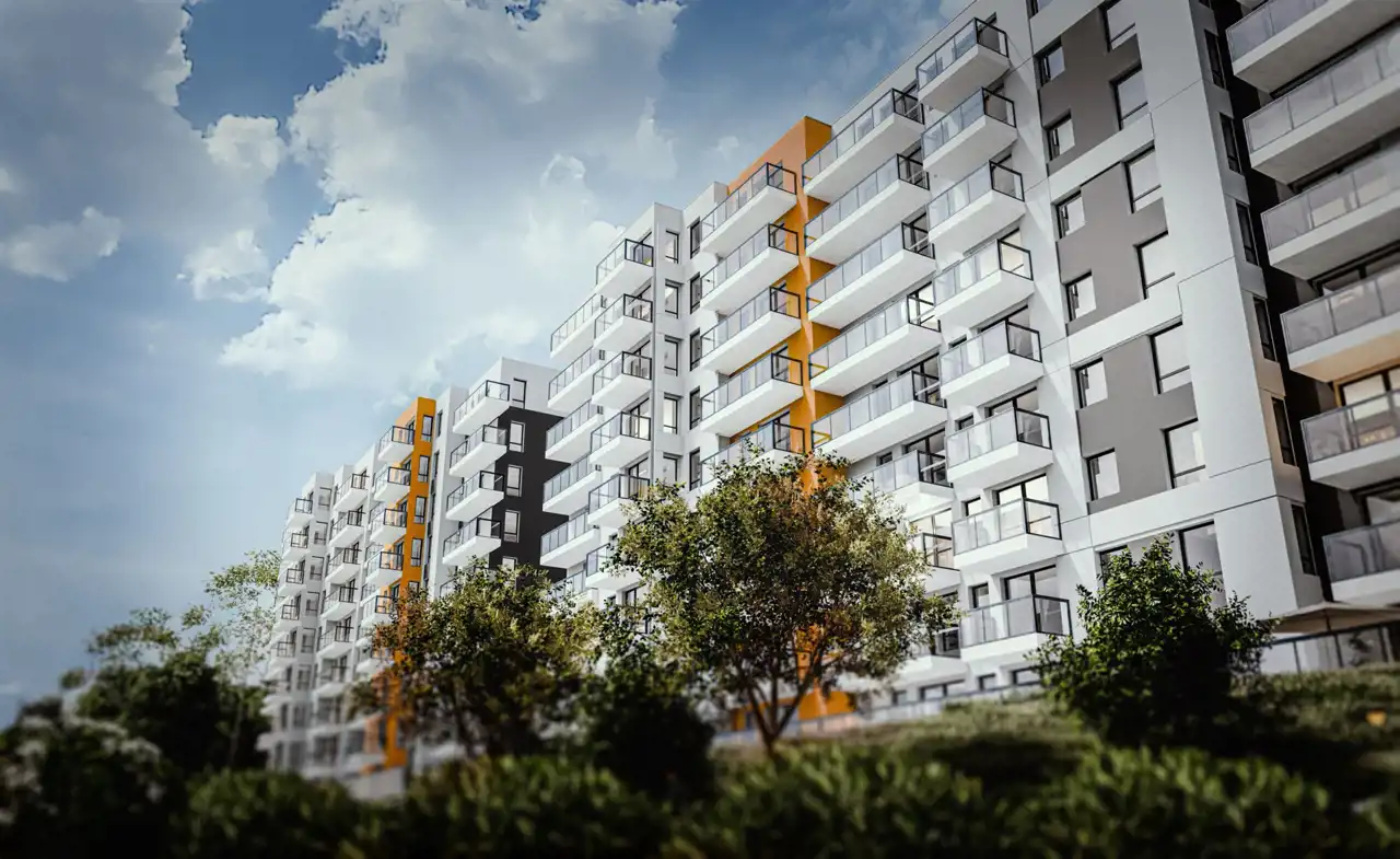 - nowoczesnym designem budynku w postaci zastosowanych przeszkleń, zarówno salonów, jak i klatek schodowych oraz wykorzystania najmodniejszych barw na elewacji;