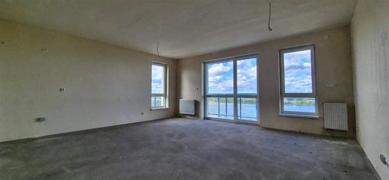 - bardzo dużymi balkonami z przeszklonymi drzwiami wejściowymi z salonu, z widokiem na Wisłę;