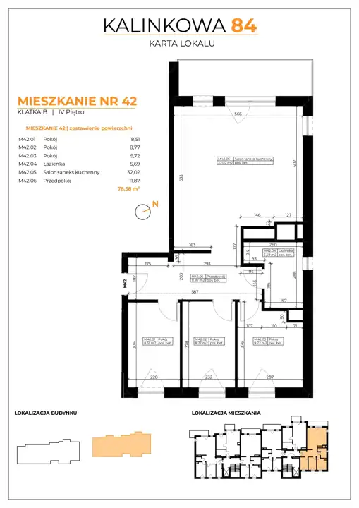 - Charakterystyka mieszkania 76.58 m2, 4 pokoje