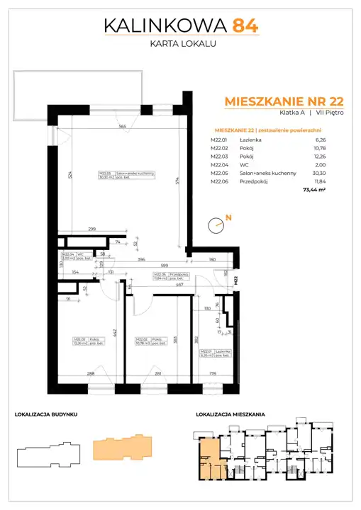 - Charakterystyka mieszkania 73.44 m2, 3 pokoje