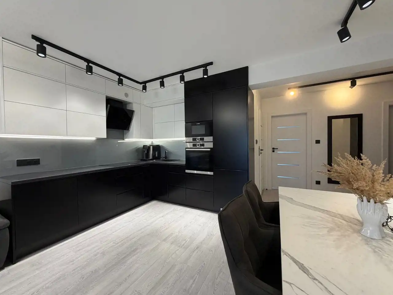 Już od wejścia mieszkanie robi wrażenie swoją spójnością i jakością wykończenia. Obecny właściciel wykończył je od stanu deweloperskiego, wybierając rozwiązania, które nie tylko świetnie wyglądają, ale też są trwałe i praktyczne na lata.