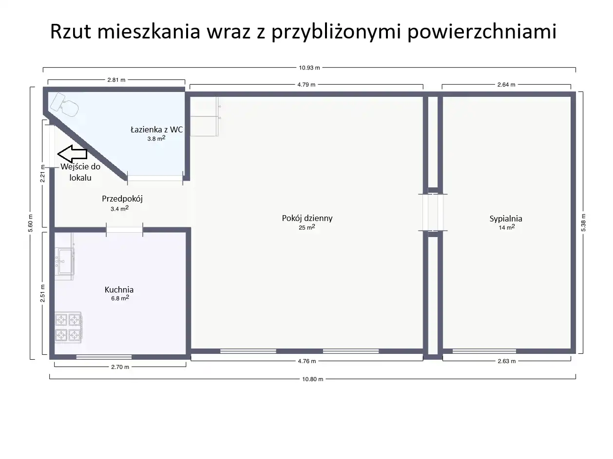 Spis poszczególnych pomieszczeń wraz z ich przybliżonymi powierzchniami: