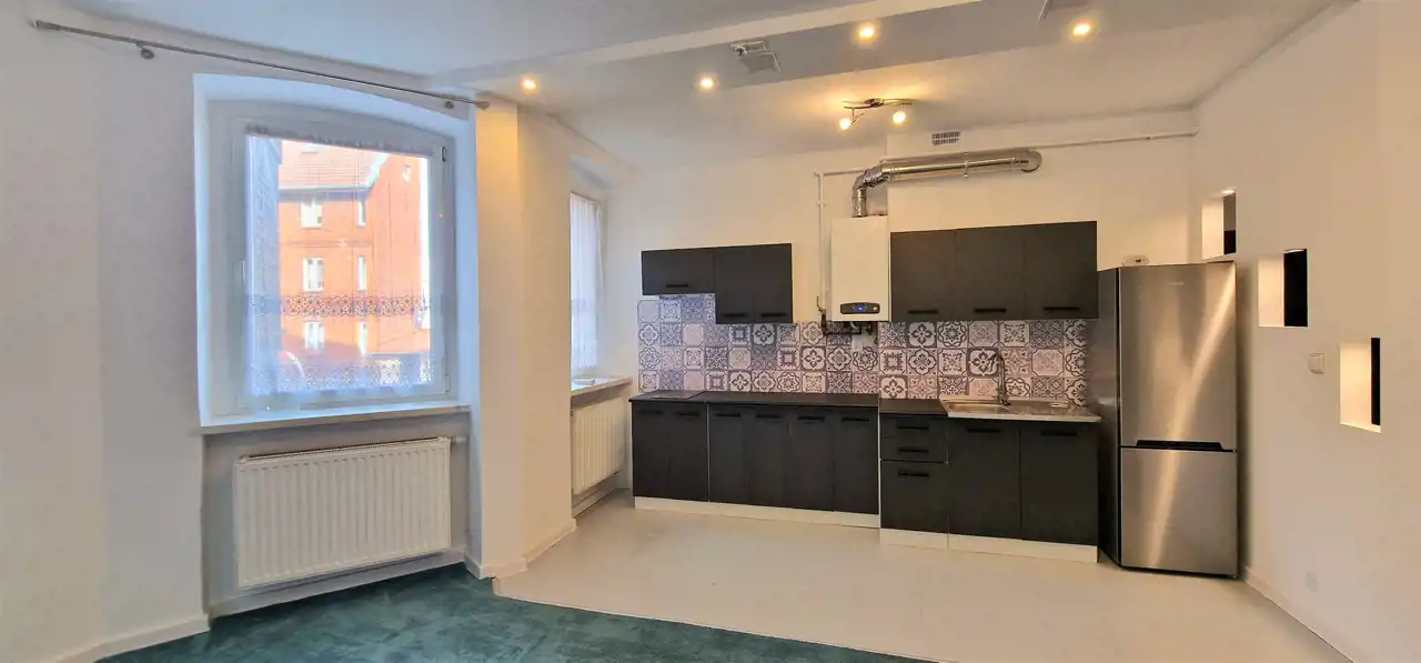 Biuro nieruchomości BAJ HOME prezentuje Państwu mieszkanie do wynajęcia. Położone jest ono na pierwszym piętrze w kamienicy przy ul. Brzeźnej w Grudziądzu. Jego powierzchnia użytkowa wynosi 50,98 m2 i składa się z salonu z aneksem kuchennym, pokoju, przedpokoju i łazienki z wc. Do lokalu przynależy piwnica o powierzchni 3,50 m2.
