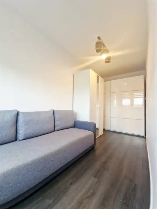 Lokal posiada okna PCV wyposażone w rolety wewnętrzne dzień-noc. Ściany w pokojach, przedpokoju oraz w kuchni zostały pokryte gładzią i pomalowane farbą w białym lub siwym kolorze, natomiast na podłogach w pokojach, kuchni oraz przedpokoju położono panele. Łazienka została wyposażona w kabinę prysznicową, zlew, lustro oraz wc. W mniejszym pokoju ściana została zabudowana pojemną szafą wnękową z drzwiami przesuwnymi, lakierowanymi w kolorze białym.