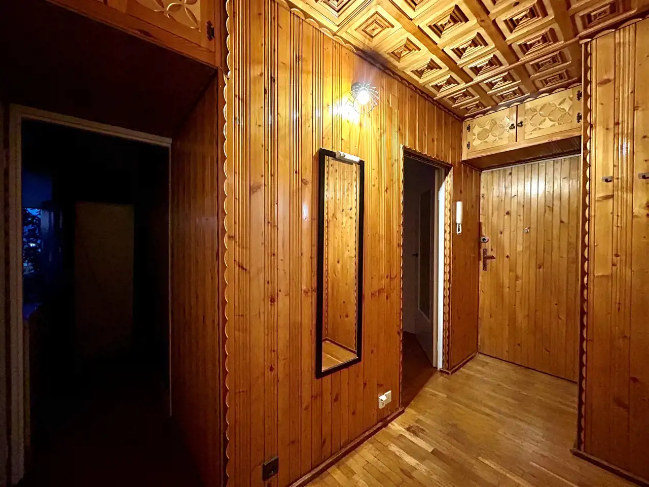 W przedpokoju znajduje się pojemna szafa w zabudowie, która znacząco ułatwia utrzymanie porządku. To idealne miejsce na odzież wierzchnią, buty czy drobne akcesoria.