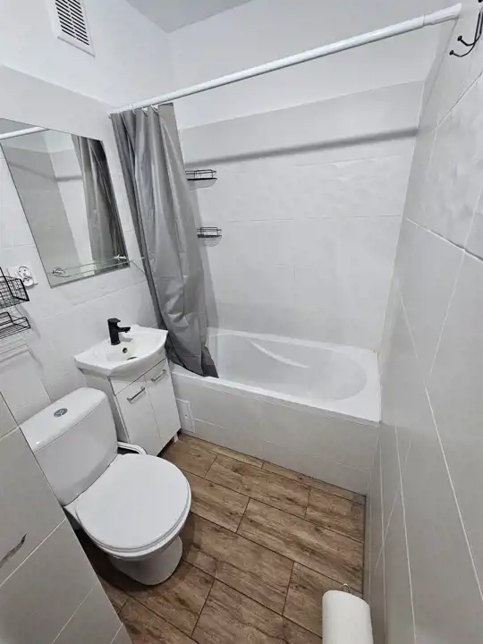 Kuchnia jest całkowicie wyposażona łącznie z lodówką, Na wyposażeniu mieszkania jest również pralka . W łazience oprócz umywalki i wc jest wanna z opcją prysznica.