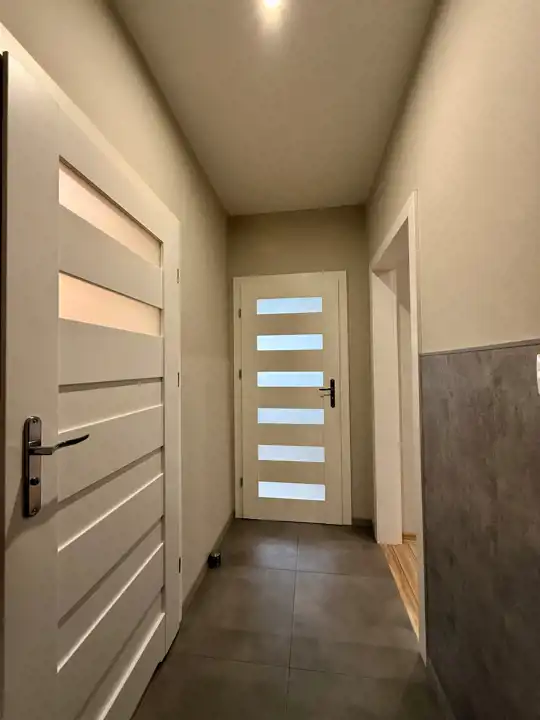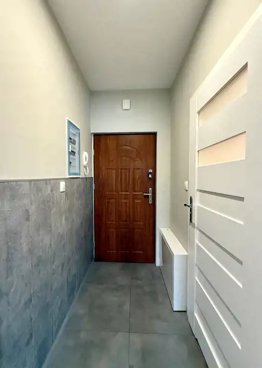 Mieszkanie jest wykończone w nowoczesnym standardzie — gładzie na ścianach oraz estetyczne podłogi (panele i kafle) tworzą przyjemne, świeże wnętrze, do którego z łatwością dopasujesz swój styl.