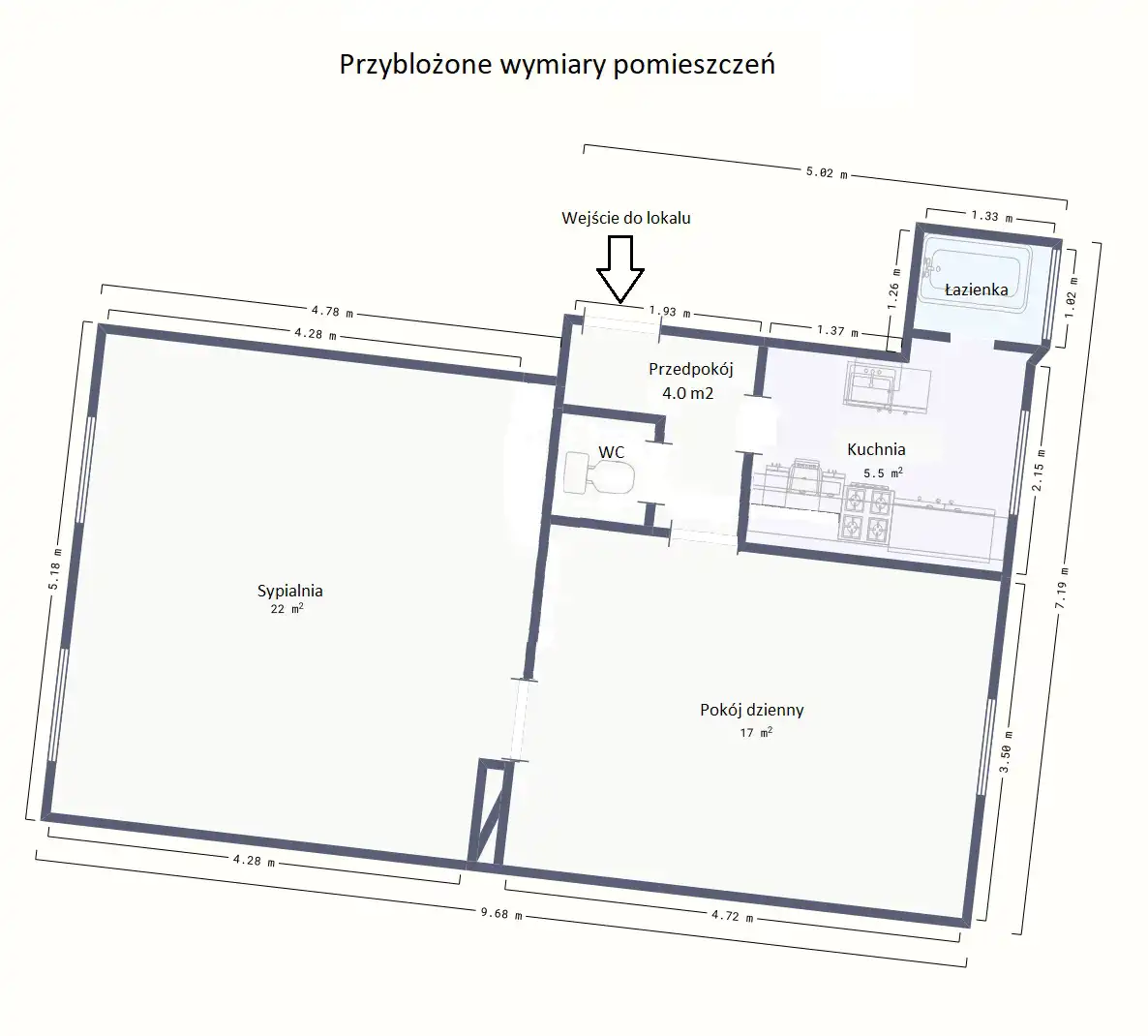 - Charakterystyka mieszkania 53.04 m2, 2 pokoje