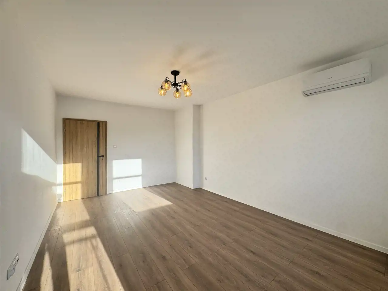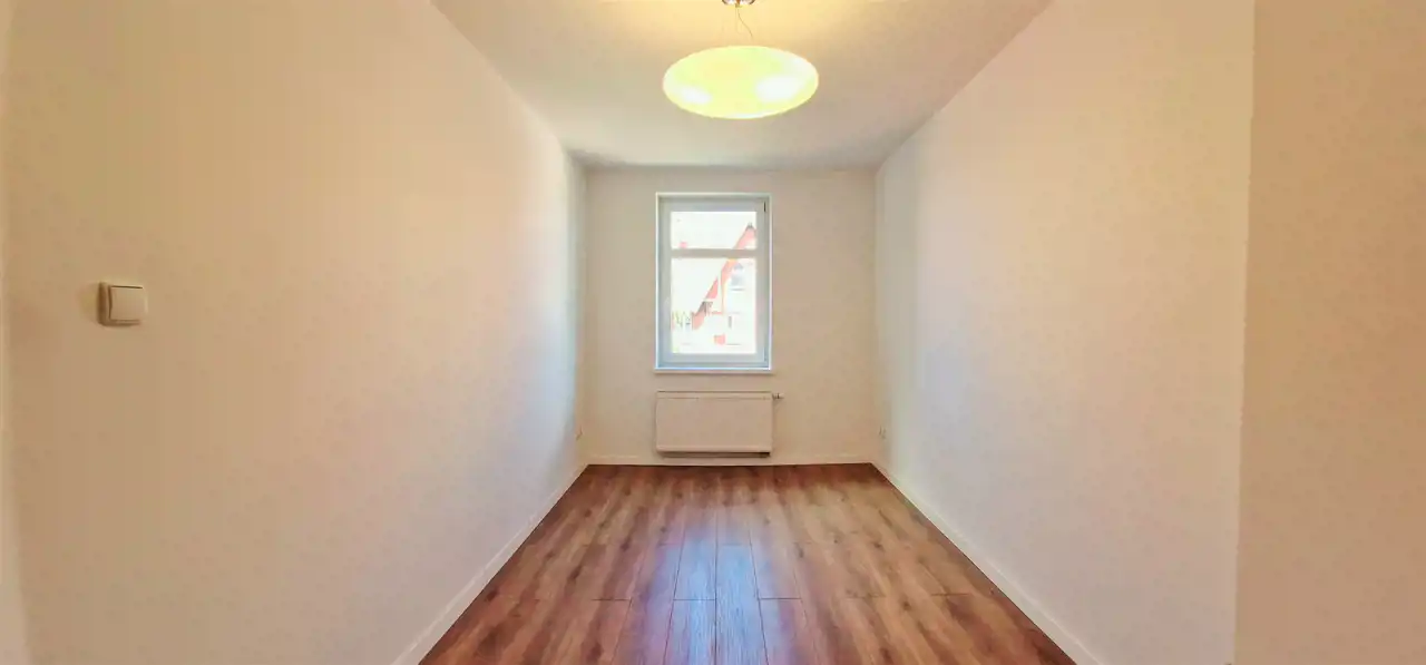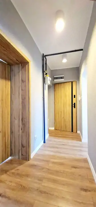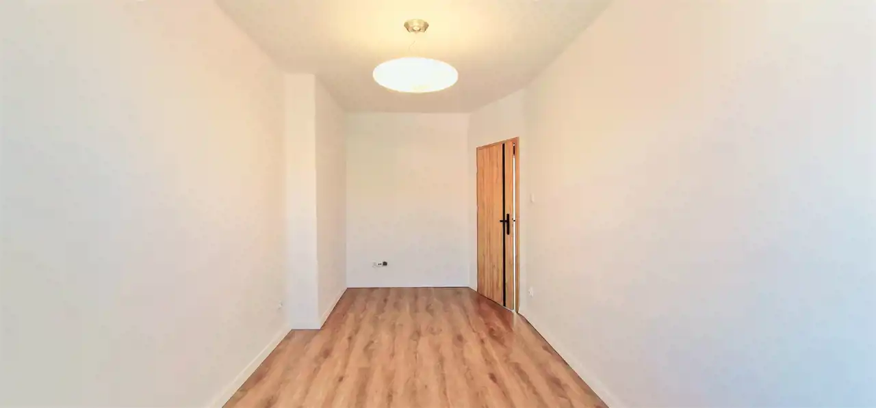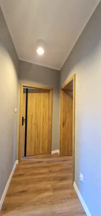 Na podłogach w pokojach, kuchni oraz przedpokoju zostały położone panele podłogowe, natomiast ściany zostały pokryte gładzią i pomalowane farbą w białym kolorze.