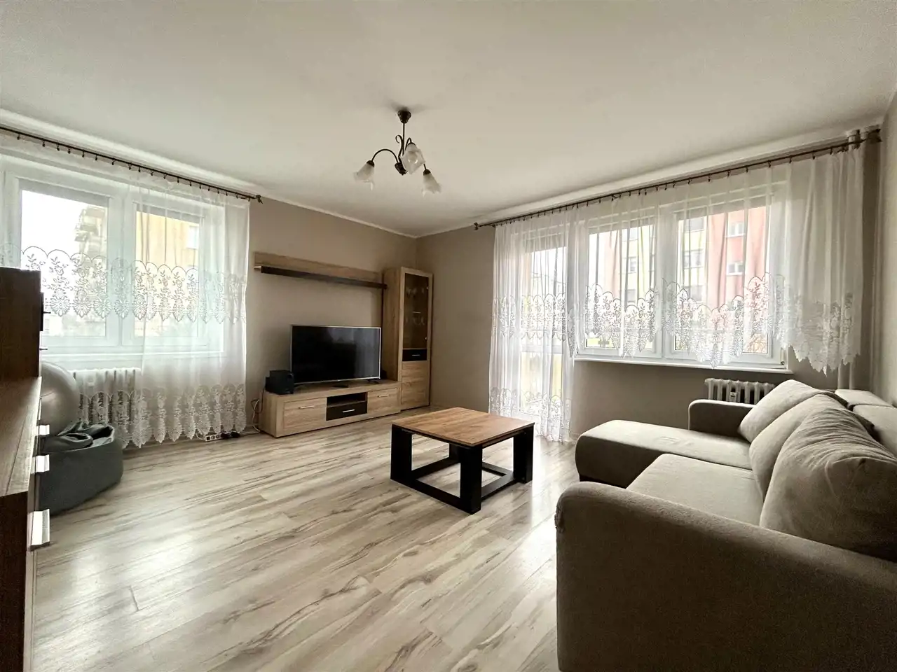 Salon jest przestronny i jasny, z wyjściem na balkon, który stanowi dodatkową przestrzeń do relaksu. W salonie znajduje się wygodna kanapa, telewizor oraz komody zapewniające miejsce do przechowywania. Pomieszczenie jest w pełni umeblowane i gotowe do codziennego użytkowania.