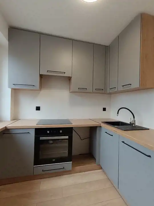 • Kuchnię – nowoczesną, w pełni wyposażoną w sprzęt AGD: lodówkę, płytę indukcyjną oraz piekarnik elektryczny