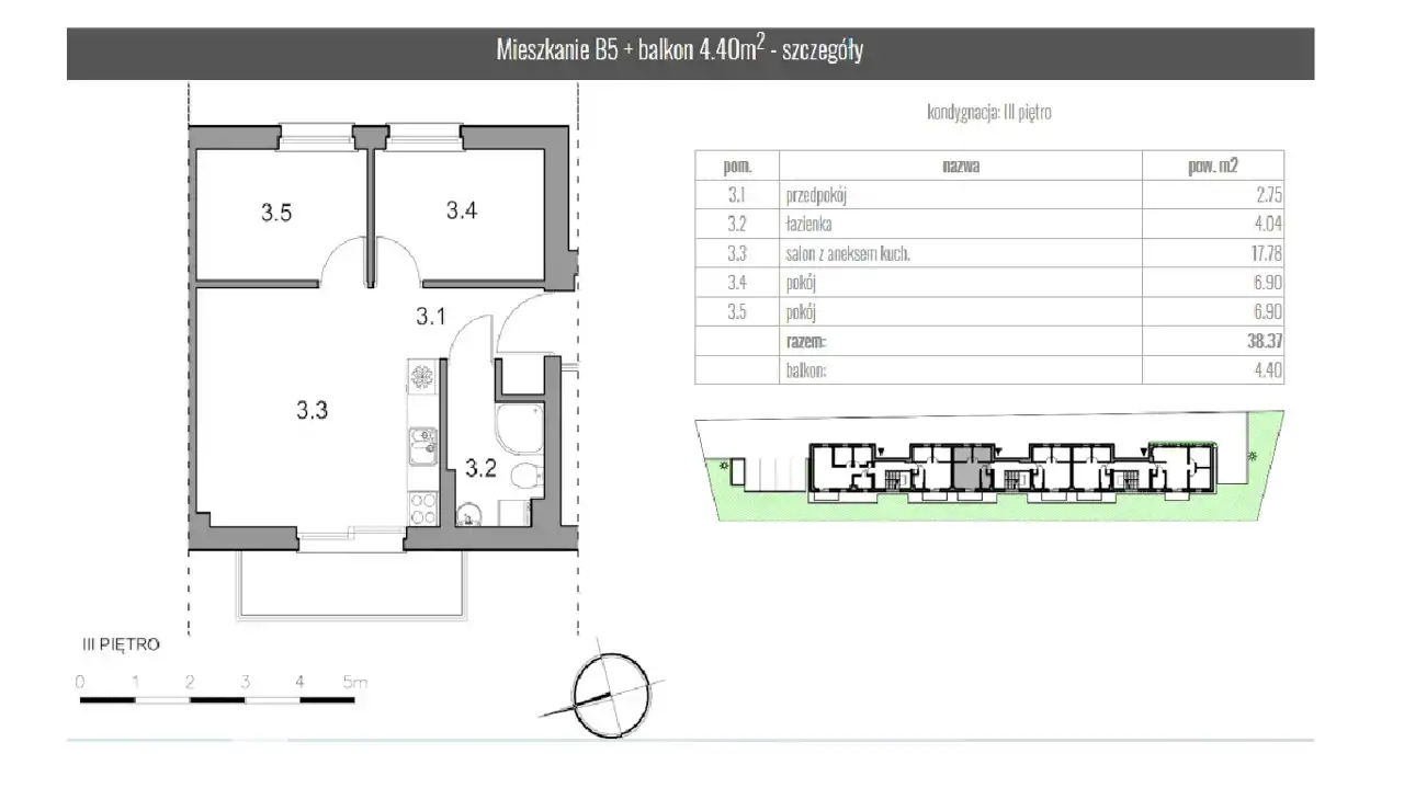 - Charakterystyka mieszkania 40.09 m2, 3 pokoje