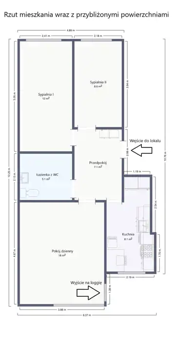 - Charakterystyka mieszkania 63.3 m2, 3 pokoje