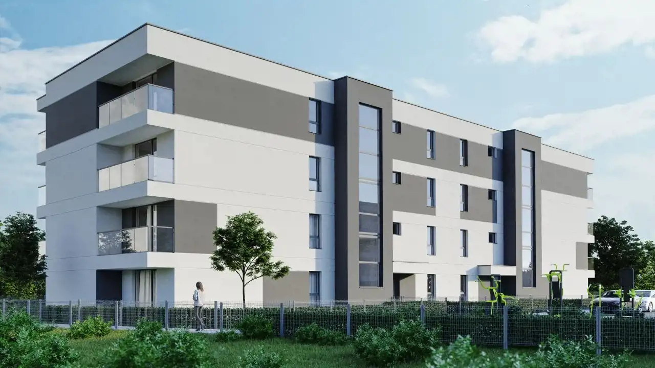 Budynek wykonany jest w wysokim standardzie. Ściany konstrukcyjne wybudowano z bloków wapienno- piaskowych Silka. Zaprojektowano ocieplenie budynku styropianem o grubości 18 cm, a elewację z tynku mineralnego pokrytą farbą silikonową. Betonowa konstrukcję płaskiego dachu została zaizolowana wielowarstwowo. Dodatkowo z zewnątrz budynek ozdobiony jest modnymi barwami. Dopełnieniem nowoczesnego designu jest zastosowanie dużych przeszkleń klatek schodowych oraz ozdobnych lameli na wszystkich piętrach, dopasowanych kolorystycznie do drzwi i ościeżnic. W całym budynku zamontowane są trzyszybowe okna firmy Decco. W salonie od strony południowej zastosowano duże, podwójne okno tarasowe, dzięki któremu uzyskają Państwo więcej komfortu i światła. Mieszkanie wyposażone jest również w instalacje: tv, elektryczną, domofonową i wodno-kanalizacyjną. W każdym pokoju jest dodatkowo instalacja komputerowa i rtv. Centralne ogrzewanie miejskie jest realizowane we wszystkich mieszkaniach za pomocą grzejników. W lokalach zastosowane zostały antywłamaniowe drzwi wejściowe. Starannie zaaranżowane części wspólne nieruchomości, posiadają teren otoczony ogrodzeniem.