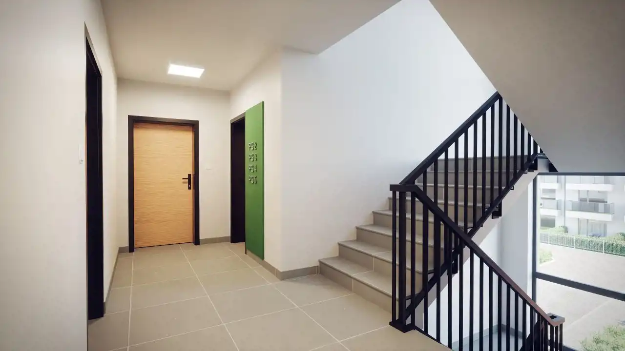 - duże bezpieczeństwo lokatorów, które zwiększone jest przez ogrodzenie całej nieruchomości, zastosowanie szlabanów elektrycznych, oświetlenie, zewnętrzne i domofony.