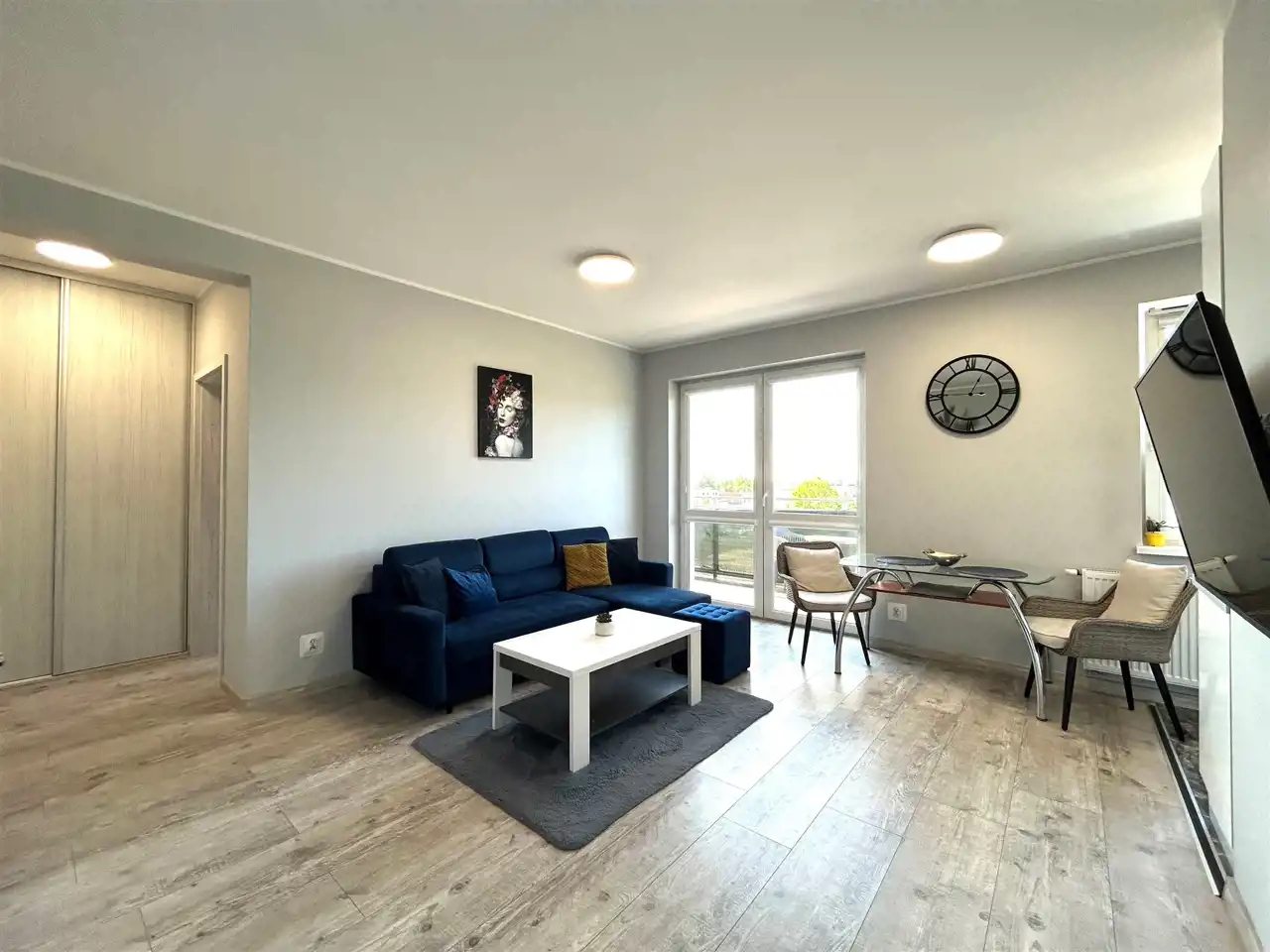 - Jasny i przestronny salon z wyjściem na taras