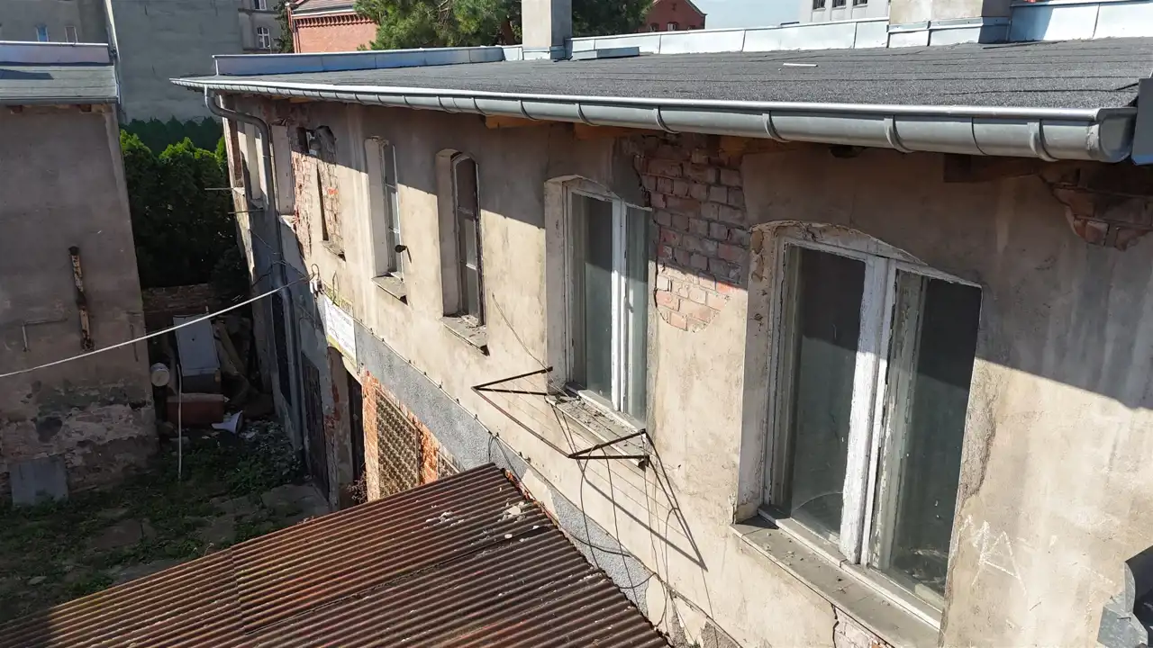 Budynek posiada solidną konstrukcję, a dach został całkowicie wymieniony w 2023 roku, co znacznie zwiększa bezpieczeństwo i komfort użytkowania. Pozostała część nieruchomości wymaga remontu, co otwiera szerokie możliwości adaptacyjne – od gruntownego odnowienia lokali mieszkalnych po modernizację części usługowej na potrzeby działalności gospodarczej.