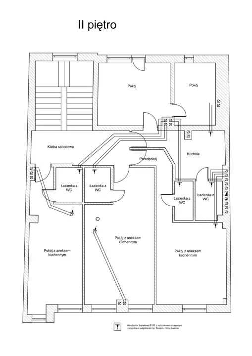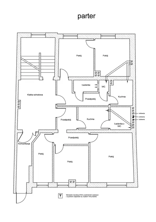 - wentylacyjnej - w związku ze zmianą sposobu użytkowania w budynku przebudowano istniejący układ wentylacji grawitacyjnej.