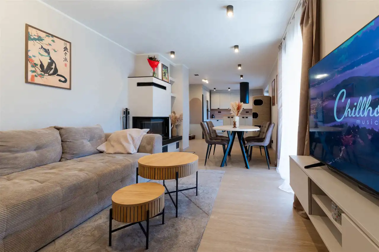 - Przestronny salon z aneksem kuchennym – serce domu, idealne na rodzinne spotkania.