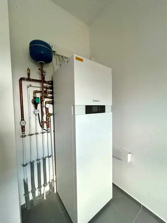 * ogrzewanie: pompa cieplna + kominek