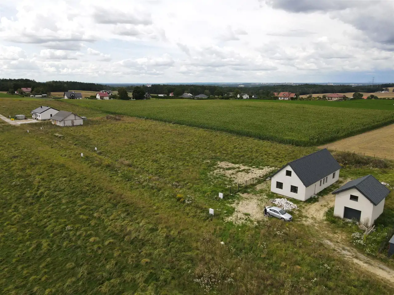 Głównym atutem oferowanej nieruchomości jest nie tylko projekt funkcjonalnego domu, lecz również jej lokalizacja i malownicze położenie. W najbliższej okolicy znajduje się głównie zabudowa jednorodzinna, pola, łąki, droga gminna oraz staw. Działka znajduje się nieco na uboczu względem bardziej ruchliwych ulic, co z pewnością będzie pozwalać nowym nabywcom cieszyć się ciszą i spokojem.