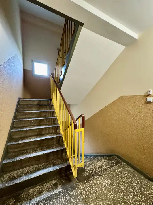 Mieszkanie położone jest na pierwszym piętrze bloku należącego do wspólnoty mieszkaniowej. Składa się z: