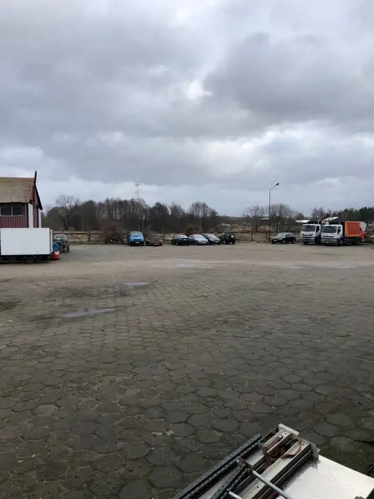 Przed obiektem znajduje się utwardzony plac manewrowy, który pozwala na wjazd dużego samochodu ciężarowego.