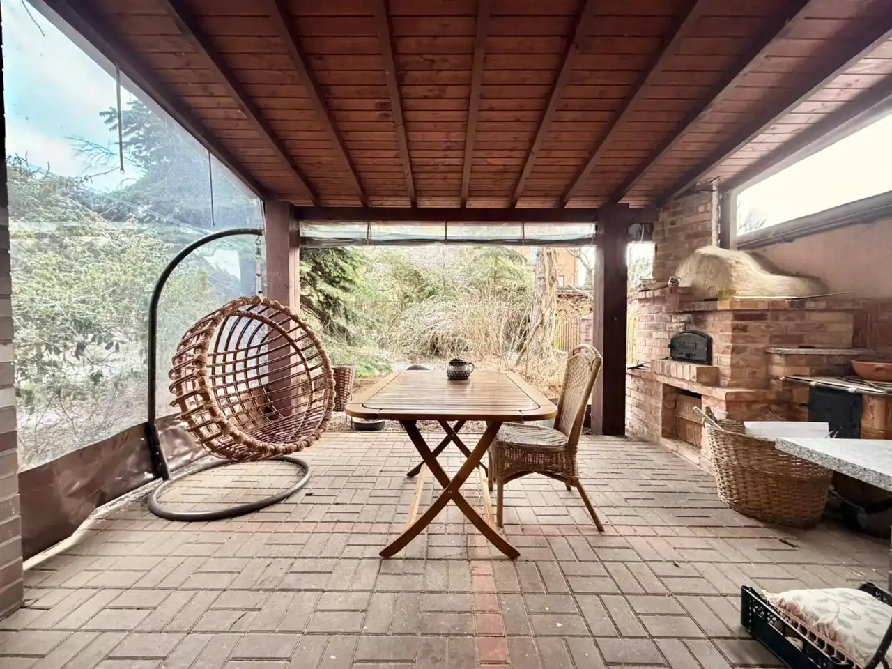 ogród zimowy i taras z piecem do pizzy